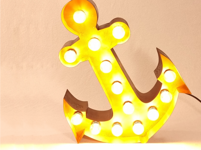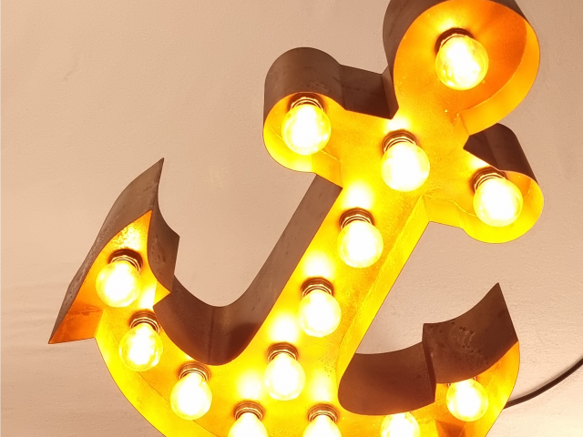 Design-Leuchte aus Metall in Ankerform zum Stellen und Hängen, indoor
