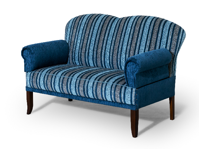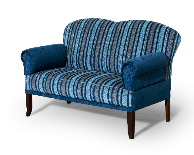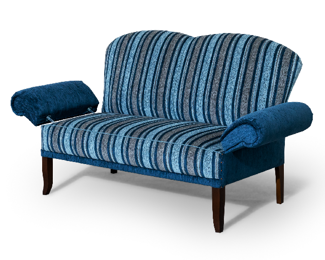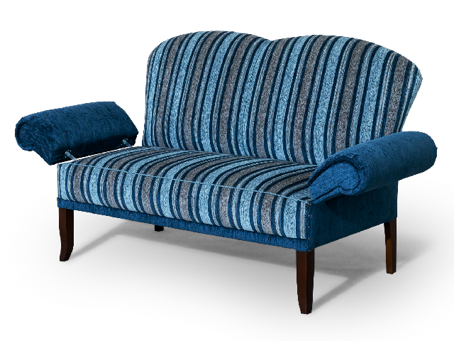Küchensofa mit Sitzfläche auf Stuhlsitzhöhe. Sitzfläche mit Federkern, einer kräftig gepolsterte Rückenlehne und Armlehnen, die beidseitig klappbar sind.