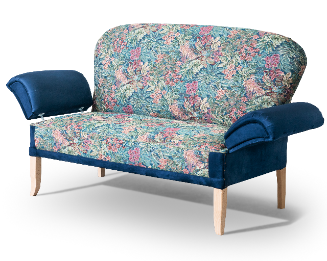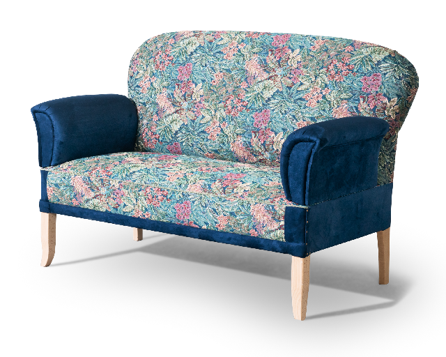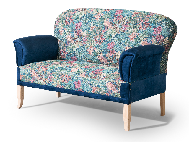 • Polsterstoff: dunkelblau, bunt-floral-gemustert