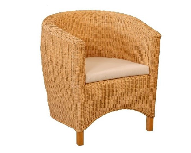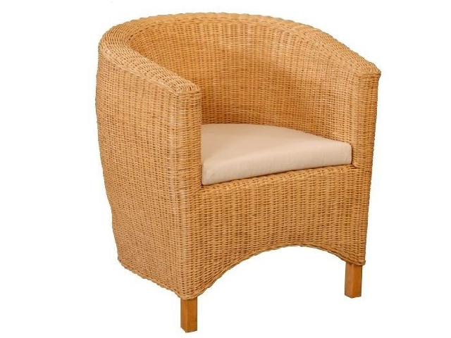 Bequemer honigfarbener Peddigrohrsessel in Clubsessel-Optik (ohne Kissen).
