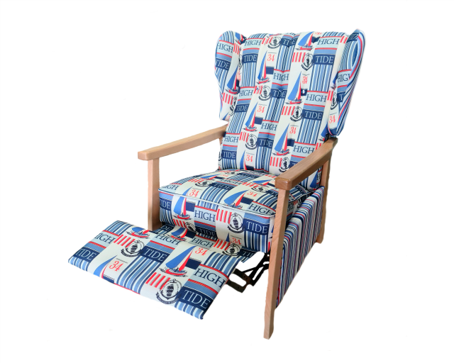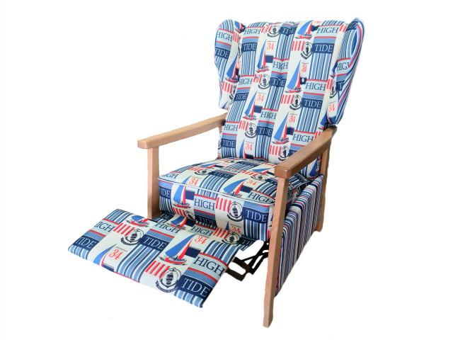 Fernsehsessel "959" mit manuell ausklappbarem Fußteil und verstellbarer Rückenlehne in skandinavischem Stil.